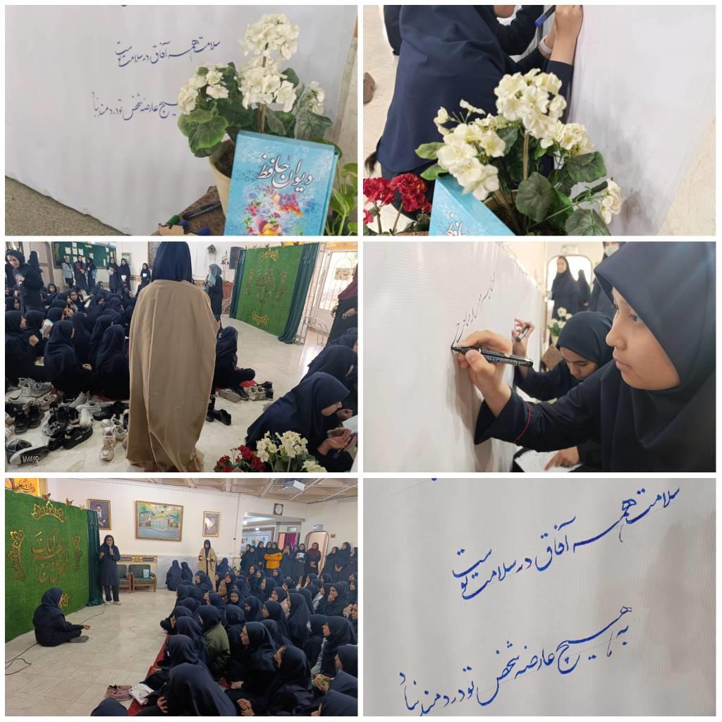 در این برنامه دانش آموزان به اجرای نمایشی در مورد ارتباط شعر حافظ با زندگی امروزی پرداختند و در کنار مراسم، دانش آموزان مستعد به خطاطی ابیاتی از اشعار حافظ و ایجاد دیوار نگاره اشعارحافظ پرداختند. هم چنین یکی از غزلهای حافظ خوانده شد و علت نامگذاری ۲۰ مهر به روز حافظ نیز بیان شد. به جهت تلطیف فضا، این برنامه با پخش موسیقی سنتی با اشعار حافظ همراه بود.