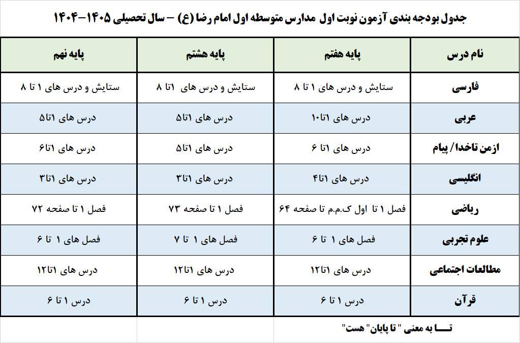 برنامه امتحانی و بودجه بندی امتحانات ترم اول 405-404